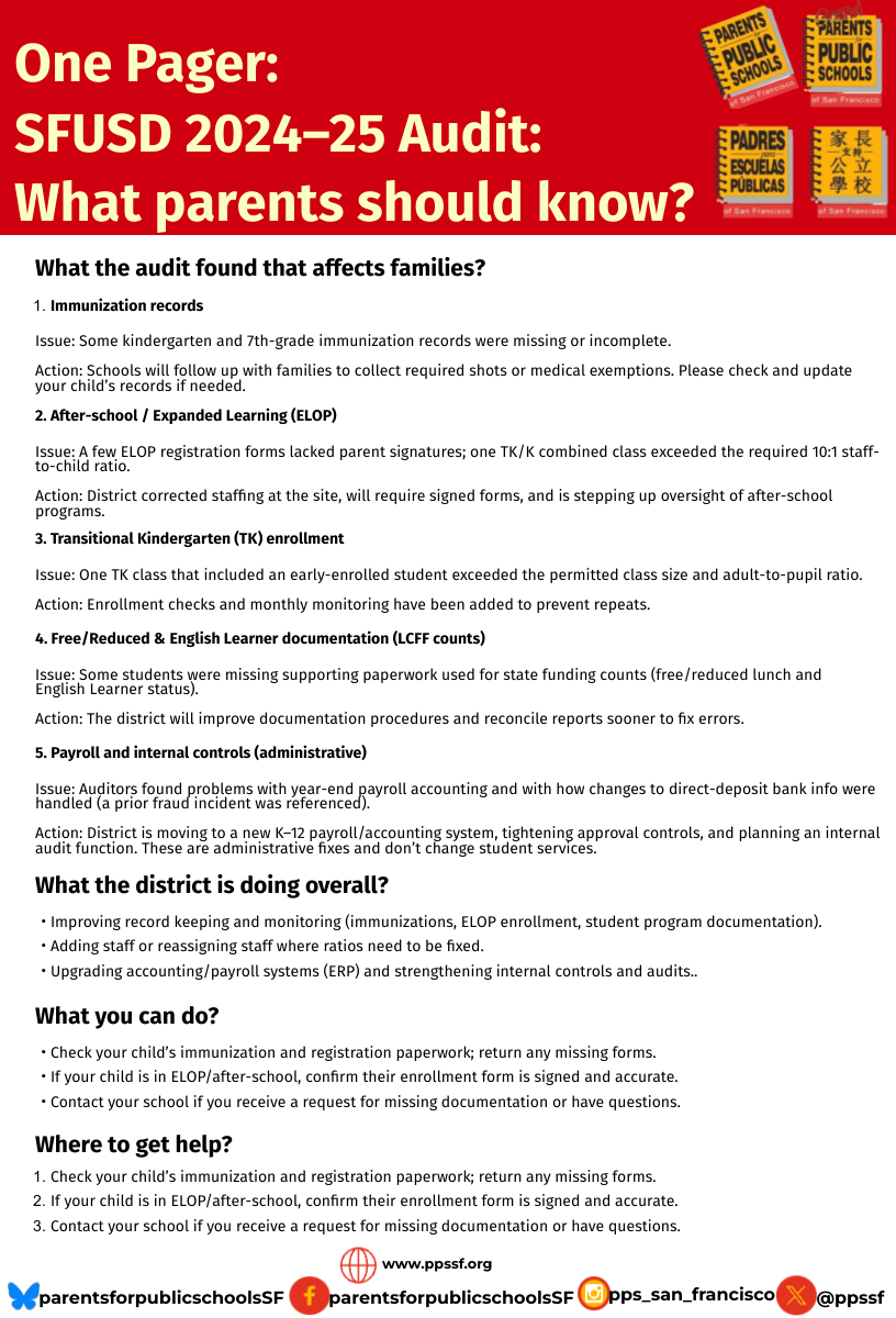 SFUSD Audit June 30, 2025 〰️What parents should know?
